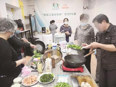 作为全国科普示范社区,新昌居委于2016年年底与区营养师协会结对签约,截至2020年年底,已签约三期,开展了形式多样的各类科普活动。 为了让广大居民学习营养知识、建立营养生活方式,在2021年全民营养周暨2021年黄浦科技节到来之际,新昌居委与区营养师协会在新昌科普驿站举办“我家三餐好营养”烹饪PK赛。大家秉承着“营养第一、比赛第二”的宗旨,在短短一上午的时间,制作出了美味、安全、营养的多道美食。 此次活动,以比赛促沟通、促交流、促传播,通过全社会、多渠道传播核心营养知识,让居民深入了解食物,增强营养意识、提升健康素养。 (新昌居民区)