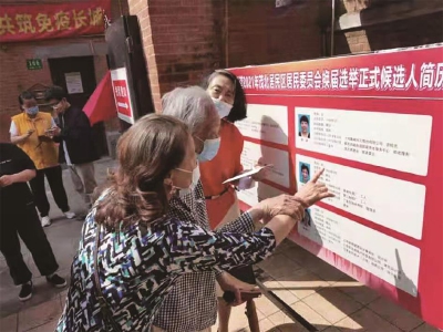 □记者 沈冠君 为不断加强居委会干部队伍的战斗力和凝聚力,持续提高社区治理能力和水平,5月29日,南京西路街道各居民区召开居委会换届大会,通过居民手中的选票选出一批优秀的居委会成员。未来5年,新一届居委会将用心用情为群众办实事、办好事,着力于提升群众的获得感、幸福感和安全感,为建设“福民南西 魅力都心”奠定坚实的基础。 提高思想认识树立正确导向 5月27日,南京西路街道召开“两委”换届工作领导小组(扩大)会议,传达市、区相关要求,部署完善居委会换届工作,对严明换届纪律提出要求,进一步统一思想、提振精神,为换届投票日做好充分准备。街道机关干部及派出所、卫生中心等相关领导参加了此次会议。 会议指出,要从思想上高度重视。“两委”换届工作事关党的全面领导,事关基层政权稳固,事关群众民生福祉和社会大局和谐,也关系到南西社区基层治理体系和治理能力现代化建设,必须要高标准要求、高质量推进、高效率完成。 会议强调,要从组织上细化措施。准确深入走访排摸,了解本社区居民的详细情况,对摸排期间遇到的难点、痛点,各工作组要采取有力的应对措施;考虑周详应急预案,将工作中可能遇到的风险隐患掌握清楚、化解到位;紧密结合近期的疫苗接种宣传工作,不能放松思想警惕,时刻绷紧防疫这根弦,在筹备换届工作的每个阶段都要落实好各项防疫举措。 会议要求,要从成果上确保实效。严格贯彻遵守换届纪律,做到定人定岗定责、依法依规依序,严格履行法定程序,营造风清气正的换届工作氛围,确保换届工作过程合法、过程公开、结果有效,确保换届成果经得起群众监督和历史检验。 社区居民委员会换届工作是对社区组织能力的一次大考,各居民区应充分发扬民主精神,利用好线上、线下各个途径进行广泛宣传和动员,以饱满的精神状态全力推进各项任务,积极号召广大居民行使民主权利,踊跃参与投票! 从严筹备组织精心开好大会 悬挂条幅、发放告知书……古柏居民区的工作人员利用多种形式进行广泛宣传,力争最大程度提高居民的知晓度和参与率。 “我们挨家挨户,上门告知,块长和楼组长分工到位、包干到户,耐心解答居民们的问题。”古柏居民区的工作人员告诉记者,他手机里的换届工作微信群,信息源源不断地被推送出来,“这都是各个块区的负责人在及时更新换届工作的最新动态”。 南京西路街道各居民区经过前期的精心准备,细化换届工作流程、内容和时间表等,各居民区依法推选产生居民选举委员会,组织和指导各居民区的换届工作,切实做到法定程序一个不少、规定动作一个不漏,确保换届工作依法有序开展。5月29日,各居民区根据实际情况,精心布置会场和投票站,为选举日正式投票做准备。 选优配强好班子换出南西新局面 5月29日,南京西路街道各居民区正式召开2021年居民委员会换届大会。 一大早,各居民区工作人员就来到大会现场,展开细致、精准的会前筹备工作。医务人员穿上隔离服,对会场进行消毒,坚决不放过每个角落。消毒液、测温计、纸巾,依次整齐地放在会场入口的桌子上。 前来参加换届投票的选民中有不少社区老人,会议现场的志愿者们积极上前予以搀扶,间或遇到一些腿脚不便的居民,志愿者们更是尽心照顾、贴心服务,帮助他们进入会场。 静安区人大代表、政协委员们分赴各居委会,现场监督居委会换届工作。 换届大会正式开始。会场庄重严肃,主持人介绍新一届居民委员会职数和候选人产生情况,宣布投票方式和选举大会纪律,讲解选票填写方法等。工作人员严格遵守换届纪律,确保换届依法合规,有序有效。各居民区现场宣布结果,新一届居委会成员产生,居委会新老成员顺利完成交接。 居委会换届既是干部队伍建设的必然要求,也是基层社区自治事业薪火相传的现实需要。此次居委会换届工作实现了“绘出好蓝图、选出好干部、配出好班子、树立好导向、形成好气象”的目标要求,为南京西路街道扎实推进各项工作提供了坚强的基层组织保证。