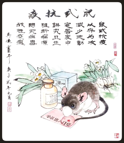 《鼠式抗疫》(国画)刘巽侠