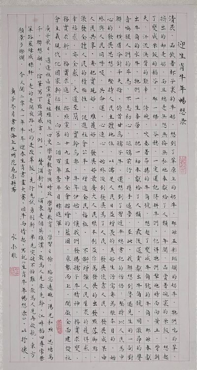 挥别实“鼠”不易的庚子年,我们喜迎“牛”转乾坤的辛丑年。值此辞旧迎新之际,由虹口区文化和旅游局,共青团虹口区委员会,欧阳路街道党工委、办事处主办,朱屺瞻艺术馆承办的“韶华孺牛——2021年生肖艺术作品展”将于2021年1月28日-3月7日在朱屺瞻艺术馆举行。 “生肖文化”是欧阳路街道倾力打造的“一街一品”文化特色品牌,作为品牌的主打项目“生肖艺术作品展”连续走过了12个年头,它一如既往地立足于弘扬中华民族传统文化,倡导社区和谐文明。 此次展览的书画、摄影作品由海派书画名家、社区艺术爱好者获奖作品,金山农民画、工艺剪纸和青少年优秀原创作品组成。本次展览共收到来自虹口、杨浦、静安、黄浦等全市范围内的书画、摄影作品1300余件,经专家评审,遴选出获奖作品90余幅。获奖作者中既有年近九旬的耄 老人,也有稚气未脱的学龄儿童。参展作品有力诠释了对新时代文明的实践,也充分表达了对美好生活的向往。 本报特刊登此次生肖艺术展的一、二、三等奖获奖作品,以满足广大书画摄影爱好者的鉴赏需求。 (欧阳路街道社区文化活动中心供稿)