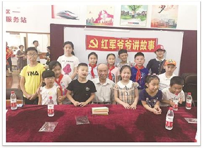 为进一步丰富青少年暑期活动,街道司法所开展了一场特殊的追寻“红色记忆”关爱行动,特别邀请参加抗日战争的老红军房崇禧爷爷,为小朋友们讲述曾经的峥嵘岁月,重温战火年代的生活,使小朋友牢记革命历史,增强爱党情节,勇担复兴使命。 “铁流两万五千里,直向着一个坚定的方向。苦斗十年,终锻炼成一支不可战胜的力量……”房崇禧用《八路军军歌》打开了话匣子,小朋友们认真地听房崇禧娓娓道来,长征路上红军吃完了青稞面,吃军马,军马没了,吃皮带,皮带没有了,去吃草根。“皮带能吃?”红军爷爷笑着孩子们说:“那时候的皮带,可是真牛皮的嘞!”。红军长征的艰苦,老红军用了那句“苦不苦,想想长征两万五,累不累,想想雷锋董存瑞”的童谣做了结尾。 红军爷爷的故事让小朋友都深深的震撼原来战争是如此的残酷,也更加深刻理解了幸福生活的来之不易。他们用稚嫩的双手,为红军爷爷送上了最真挚的祝福。 孩子们在活动中增加了对那段可歌可泣红色历史的了解,加深了他们民族自豪感、激励了孩子们报效祖国、奋发图强的意志。红军爷爷还拉起了手风琴,和小朋友们一同唱起了那红色之歌。 优美的歌声萦绕在充满历史气息的石库门里,不变的是那永远不会忘记的红军精神。