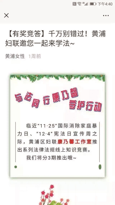 通讯员 查小怡 11月25日是国际反家庭暴力日,为预防和制止家庭暴力,进一步增强妇女群众的“反家暴”意识,保护妇女群众在婚姻家庭中的合法权益。瑞金二路街道妇联以“国际反家庭暴力日”为契机,整合资源,上下联动,全方位开展“反家暴”主题活动,引导广大家庭成员树立正确的家庭观念和法制理念。 线下宣传 社区护航 各居民区妇女之家以黑板报、电子屏等形式宣传“反家暴”法,营造浓厚宣传氛围。此外,部分居民区还结合社区活动,向社区居民发宣传折页和宣传品。工作人员向居民详细介绍了什么是家庭暴力、如何预防和制止家庭暴力以及反对家庭暴力的相关法律法规,并与居民积极互动,现场进行答疑解惑。 专题讲座 以案说法 依托居委妇女之家平台,开展了内容丰富的维权知识专题讲座,深刻剖析了当前家暴的特点和危害,以及遭受家暴如何应对、夫妻相处之道等,心理咨询授课、律师专课,让反家暴的必要性和应对举措深入人心。让居民了解家暴的危害性,倡导家庭成员互相尊重、和睦相处。 竞赛微课 多样互动 充分运用微博、微信等线上媒体宣传,建立基层妇联微信群打造多元化自媒体网络,积极发动社区居民参与黄浦女性微信平台发布的网上维权知识竞赛。 此外,通过分享反家庭暴力影视资料,更直观地再现家庭暴力案件发生、发展、处理及严重后果,使广大群众在观看演出的同时,提高了法律意识,知道什么是家庭暴力、家庭暴力的范围,怎样预防家庭暴力、如何面对家庭暴力。 家庭暴力不是家务事,而是违法行为。公安机关、人民法院、基层自治组织、人民团体、社会工作服务机构、医疗教育单位、救助福利机构、用人单位都有权介入。亲友、邻里、社区等发现举报、支持参与也是非常重要的。 当遭遇到家暴时,应注意这些事项: 一、远离放有尖锐器具的地方(例如:厨房),以免施暴者用锐器伤到你;靠近门窗向邻居及路人求助;注意保护头、脸、胸、腹等身体重要部位;躲进有电话可求助的房间,第一时间拨打110。 二、及时向有关机构反映。各地妇联“12338”妇女维权热线可以在第一时间提供帮助,也可通过法律服务专线“12348”寻求法律援助。 三、按照公安部门的相关规定,家庭暴力已明确属于“110”报警范围。公安机关接到家暴报案后应及时出警,制止家庭暴力,按照有关规定调查取证,协助受害人就医,鉴定伤情。 四、注意证据的收集和保存。(保存报警回执,笔录,伤情鉴定报告、医院病历资料等) 五、可向法院申请人身安全保护令(人身安全保护令的有效期不超过6个月,自作出之日起生效)。