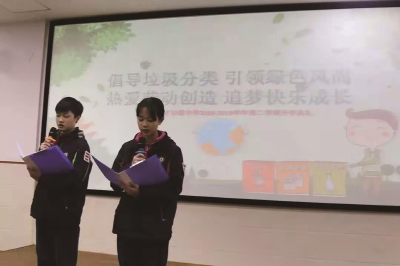 你知道2018年上海每天生活垃圾清运量是多少吗?生活垃圾可以分成哪几类?近日,关于垃圾分类的话题持续火热,就连学校的开学日都和它挂上了钩。石二辖区内的育才初级中学和静安区外国语附属中学不约而同地在开学第一天,选择垃圾分类这项生活新时尚作为“开学第一课”的内容。 2月20日上午,上海市育才初级中学在五楼报告厅里隆重举行了“倡导垃圾分类 引领绿色风尚,热爱劳动创造 追梦快乐成长”的主题升旗仪式暨2018学年第二学期开学典礼。大队部通过播报新闻、主题演讲、合唱励志歌曲《我们都是追梦人》等形式号召全校队员为了保护地球的环境,做好垃圾分类,引领绿色风尚。 接着由石门二路街道绿化市容管理部门邀请的环保讲师结合PPT、视频教材以及垃圾分类游戏道具等,向学生们介绍了什么是生活垃圾、目前上海市生活垃圾分类标准以及如何正确进行正确投放方式等。在互动环节中,学生们还对如何在校园和家中做好垃圾分类展开了思考和讨论,并通过参加垃圾分类小游戏,进一步掌握了垃圾分类的具体要求和做法。 育才初级中学和静安区外国语附属中学作为街道垃圾分类示范单位,其实很早就开始在校园内进行垃圾分类工作,引导在校学生不断提高“垃圾分类,从我做起”的环保理念和实际操作能力,意在以小手拉大手的模式,让学生去影响其他家庭成员共同做好家中的垃圾分类,带动全社会共同推动生活垃圾分类工作的良好氛围。 近期,《上海市生活垃圾管理条例》已获得通过并自2019年7月1日起施行,有了法律法规的约束、部门的正确引导加上全体市民的积极认同和参与,垃圾分类工作一定能在石二辖区内顺利的推进,垃圾分类工作也一定能成为大家生活中的常态。 (街道绿化市容管理所)