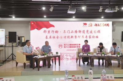 为庆祝建国70周年和建党98周年,“七一”前夕,石门二路街道举办了一场邻里行动·石门二路街道党建引领基层社会治理创新暨智库专家论坛。街道坚持学习贯彻习近平新时代中国特色社会主义思想,紧密围绕、积极践行“不忘初心、牢记使命”主题教育相关要求,现场近百人忆初心、深研讨,大家用这样一种党建论坛形式向建党98周年献礼。 6月28日论坛当天,静安区委组织部副部长孙明丽、区地区办副主任潘文波、区党建服务中心主任肖明、中共二大会址纪念馆党支部纪检委员许琴、复旦大学教授刘建军、华东理工大学教授范斌、上海外国语大学副教授俞祖成、上海四叶草堂研发助理赵洋等领导和专家应邀莅临,石门二路街道党政领导、机关科条负责人、居民区党总支书记和副书记、楼宇专职党群工作者等近百人参加论坛。 勾画党建引领品质社区动人蓝图 本次论坛由街道党工委副书记、办事处主任镇杨主持。孙明丽对街道在党建引领和社会治理创新方面所取得的成绩给予认可和肯定,同时,她也对街道的未来发展提出了自己的期望。孙明丽希望石门二路街道能继续做强党建引领,始终在党建引领的旗帜下,推进高质量创新发展;继续做深社会治理,在取得了基本治理单元上的不少实效后,今后仍需加强思考,在社区治理各方面进一步实践;继续擦亮石二品牌,把“邻里石二”党建品牌在步入新时代时赋予新的内涵。 细数“邻里石二”党建品牌发展历程 1994年10月,原静安区武定路街道与张家宅街道合并,石门二路街道正式成立。本次论坛也在街道成立25周年之际,做了一次党建总结回顾。街道党工委书记马颖慧在回顾街道25周年党建工作大事记的发言中提到,25年里,在区委、区政府的坚强领导下,石门二路街道从“单枪匹马”到“同舟共济”,区域化党建不断形成合力、发挥作用;从“强化管理”到“聚焦治理”,居民区党建不断夯实堡垒、紧扣民意;从“零的突破”到“质的飞跃”,“两新”组织党建不断强化覆盖、纵深发展;从“建网划格”到“建章立制”,网格化党建不断联结资源、突显实效。她表示,街道一代代党务工作者将接续奋斗,收获累累硕果。 论坛现场针对街道社区党建服务中心扩容装修方案进行了介绍并征询意见。大家通过贴“大拇指”形式票选街道社区党建服务中心外立面方案。孙明丽为社区党建服务中心外立面方案进行了揭牌。 迸发党建引领社会治理思维火花 党建论坛的另一个重要环节是微论坛。在刘建军教授的主持下,微论坛拉开了序幕。开场时,刘建军、马颖慧针对基层党建工作基础再夯实、重点再聚焦、品牌再擦亮、实效再体现作了互动交流。随后,新福康里居民区“宁馨楼”楼组长陈大虹分享了楼组自治案例。潘文波和范斌教授结合楼组建设进行点评。 社区居民代表现场表演了垃圾分类主题小品,街道办事处副主任周彬慧分享了近期街道开展垃圾分类工作的成果和体会,俞祖成教授就垃圾分类作了点评;赵洋带来了公共空间微营造案例的分享,街道办事处副主任滕毅围绕公共空间微营造工作进行了交流。 论坛特邀领导给予点评指导,智库专家提供理论思路,干部群众结合实践素材……大家聚焦“邻里石二”党建品牌总体目标,遵循“邻里石二”党建工作基本路径,围绕党建引领下如何深入做好基层社会治理创新这一主题,兼顾理论与实际,说出看法想法,提出意见建议。大家在热烈的氛围中进行研讨,汇聚智慧,把整个论坛推向了高潮。 石门二路街道回首一路走来的发展历程,展望朝向未来的路径遵循,为庆祝建国70周年和庆祝建党98周年献上了一份贺礼,为推动街道新时代基层党建高质量创新发展打牢了基础。 (街道党政办)