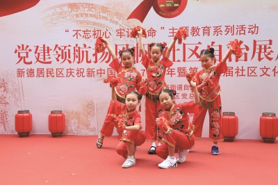 近日,在喜迎新中国成立70周年之际,新德居民区在壹街区音乐广场举办了“党建领航扬风帆,社区自治展风采”新德第十三届文化节,本届文化节充分展示了居民区在党建引领下的自治风采。 新德第十三届文化节内容十分丰富。新德“馨德雅韵”表演的开场舞《山笑、水笑、人欢笑》拉开了文化节当天活动的序幕。街道办事处主任镇杨出席活动现场,并为新德微网格党建优秀志愿者 颁奖。海商学院青马工程青年志愿者林怡然发表了自己担任小区垃圾分类志愿者以及在“育德趣乐园”活动中为小区亲子家庭文明宣讲的感想体会。新德居民区的4位居民一起宣读《垃圾分类倡议书》。经常参与新德“育德趣乐园”活动的小朋友现场表演了舞蹈《编花篮》,获得了居民们的热烈掌声。 活动现场还出现了十分感人的一幕。新德居委会特别增加了一个“寻找祖国同龄人,我与祖国共诞生”的环节。新德党总支书记周迎庆、居委会主任张易仪为同是10月1日生日的社区居民郁曾楠、丁明侠送上鲜花、全场共唱《生日快乐》歌。对于出生于1923年10月1日的郁曾楠老先生而言,更是意义非凡,今年新中国迎来70岁华诞,也是自己参与“两航起义”的70周年。活动现场,老人动情地说:“看到我们的祖国越来越繁荣昌盛,我特别开心和幸福。” 随后,五星侨之家侨眷代表表演诗朗诵《携手奋进13载,不忘初心再登攀》,小朋友们一起唱响《我和我的祖国》。镇杨宣布“新德居民区第十三届文化节嘉年华”活动正式启动。 居民们兴致勃勃地体验起了“嘉年华”各项活动:观看“不忘初心、牢记使命”纪念建国70周年党员寄语展示;“培育”新德自治树;“我和我的祖国”脸上绘制国旗;垃圾分类“大转盘”;通力合作书“书法”游戏等等。公益义卖摊位前,居民们拿出家里闲置物品或自己制作的艺术作品义卖,义卖所得捐给社区自治金……这些有趣又有意义的项目成为居民区自治管理的又一次成果展示。 独具特色的新德居民区自治管理模式以及新德居民区社区文化节已经形成了品牌效应,把广大居民的心有效地凝聚在一起,大家以文化的名义走到一起,彼此欣赏互相交流,让居民区真正成为一个温馨的大家园。 新德居民区党总支书记周迎庆表示,将继续落实好市委“创新社会治理,加强基层建设”的要求,在党建共建、社区治理、信息宣传、文化服务等领域进一步紧密结合,让新德居民区自治管理更上一层楼。 (新德居委会)