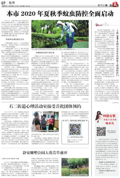 本市2020年夏秋季蚊虫防控全面启动
