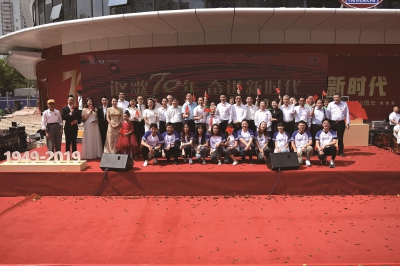 □记者 陆骏健 摄影报道 为庆祝中华人民共和国成立70周年,9月26日上午,“讴歌70年 奋进新时代”石泉路街道庆祝新中国成立70周年活动在精锐教育集团新址广场隆重举行。石泉路街道党工委书记宋胜利,精锐教育集团总裁、首席教育官柯金书,区国资经营公司副总经理李银等领导出席,驻区单位和社区居民近500名观众参加活动。 活动伊始,由六名小护旗手擎着鲜艳的五星红旗,迈着整齐划一的步伐,在国歌声中,升起了五星红旗,点燃了在场每一个人的爱国热情,拉开了本次庆祝新中国成立70周年活动的序幕。街道党工委书记宋胜利为活动致辞。他指出,70年来,石泉路街道从一个平民村变成了高楼林立的宜居之城。街道党工委、办事处将继续紧密围绕在以习近平同志为核心的党中央周围,不忘初心、牢记使命,以饱满的工作热情和昂扬的干事精神,为早日实现“两个一百年”奋斗目标而不断努力! 整场演出分为“峥嵘岁月”“砥砺前行”“盛世华诞”三个篇章。所有参演人员都来自石泉社区,他们通过歌曲、舞蹈、朗诵、沪剧等富有感染力的艺术形式,充分展现了新中国成立70周年以来,祖国发生的翻天覆地的变化,以及石泉社区日新月异的发展变迁,表达了石泉人民昂扬向上、锐意进取、同心筑梦的强大精神力量和对祖国的无限热爱和诚挚祝福。 现场同步展出了来自石泉社区多所幼儿园和小学共计50余件关于建国70周年的手绘作品,绘画作品内容丰富、色彩纷呈、栩栩如生,孩子们用手中的画笔尽情描绘伟大祖国的变化,同时把心中对祖国的美好祝愿融入到自己精心绘制的作品中,向新中国成立70周年献礼。 未来,石泉路街道党工委将带领广大党员干部群众,紧扣区委、区政府“科创驱动转型实践区宜居宜创宜业生态区”的建设目标,和“美丽石泉”的工作部署,勇立时代潮头,不忘初心、牢记使命,永远跟党走,共筑中国梦。