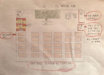 □记者 陆骏健 4月9日上海公布了开学时间:高三年级、初三年级于4月27日返校开学,各高校及中等职业学校可从4月27日起开始安排毕业年级学生返校。各级各类学校在5月6日前做好其他学段和年级分批返校开学的准备。开学时间终于有了准信,各个学校纷纷行动起来,管弄新村小学的老师们都在紧张地筹备,他们还以此为课题,让学生们分组讨论、模拟开学各项事宜、听取学生和家长的意见,从中收获了不少行之有效的意见,最终形成了“加减乘除”开学预案。 七嘴八舌策“复学” “课间休息必须戴口罩。” “还要划分班级的游戏区域。” “厕所摆放洗手液,上厕所要有一米排队安全线。” “每日执勤岗轮流做志愿者。” 复学后学校的防控工作怎么做?是学校积极关注、筹备开学复课方案的重点。在还未正式公布复学通知前,3月底,管弄新村小学充分发挥学生的自主性,以“红领巾队队碰,七嘴八舌策复学”为主题,通过多学科融合的探究学习,引导学生从实际需求出发,为学校复学防控方案的制定提出可行性建议。学生们各自分组,就午间用餐、课间防控、宣传相关知识和卫生习惯等主题各自讨论,有的还绘制成流程图、海报、短视频等,不少有效的建议让教师们眼前一亮。校长陆莉莉告诉记者:“通过这段时间的网络学习,学生们对于相关软件的操作十分熟练,于是我们就通过网络发挥他们自己的创造性,变被动学习为主动探究,收获了意想不到的效果。” 此外,学校还召开了云端家委会,听取家长意见,将学生与家长的意见汇总,纳入开学方案。 复学“加减乘除” 在接到复学相关通知后,管弄新村小学教师们纷纷行动起来,商议复学后疫情防控措施以及相关预案,形成了一套复学“加减乘除”法。 加法:防控准备尽可能周全。寒假伊始,学校就通过网格化管理,精准掌握每位学生的动态信息。学校每周进行一次关于复学的培训,4月13日起,全校教职工全部行动起来,为复学做准备。在设备上,学校准备了足够数量的口罩、额温枪,同时还新置备了热成像仪。复学后,每天3次测量体温,早上进校时,校门外热成像仪检测、进校后额温枪检测,中午再检测一次。同时,准备好一间单独的隔离室,如有情况及时隔离。 减法:减少人群集聚,降低感染风险。早上的上学时间被分成三个时间段,每隔半个小时,让不同年级的学生进校,相应将课程安排全部错开,实施一班一策,每个教室都放置时钟,上下课时间由教师掌握。对于早操、眼保健操等集体活动,也以班级为单位进行。学校德育处还在寒假中把所有学生接送家长的情况了解清楚,与他们沟通好时间,进一步减少人群集聚。 乘法:午间用餐添保障。原先,学校食堂不提供汤勺,由学生自行携带,为应对疫情,学校添置了汤勺,所有餐具统一消毒。午间用餐时各个班级轮流用餐,送餐分餐时工作人员严格按要求操作、穿戴口罩等。 除法:分层教学,线上线下结合。网络教学与传统教学的区别,在于时间分配。以往课堂教学教师可以根据学生们接受程度自主分配课程时间,但网络课程都是规定好课程时间的,因此存在学生跟不上的可能。为此,复学后学校将对线上教学的情况进行检测,以此对学生开展分层教学,确保进度快的学生吃得饱,进度慢的学生跟得上。正式复学后,学校会将线上线下教学结合,原有设置走班课程全部转移到线上,随之可能将每周到校时间减少半天或一天。如果一旦有突发情况,所有课程立马转到线上。 此次复学,学校做的准备要比以往正常开学多得多,同时每天线上教学不间断,教师们辛勤地付出是为了让学生们都能安全地回到校园学习。复学,管弄新村小学已经准备好了。