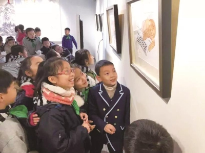 □记者 徐景 还记得世界外国语小学定期打造的SHOW空间吗?2019年,这档为学生精心打造的艺术交流平台还在进行中,才华横溢的世外学子们也将继续轮番登上这个舞台。值得一提的是,2019年开年首展也是创意十足,是此前从未有过的形式——亲子展。 二(4)班的陈思宽与其父亲陈少峰,共同献上《初见·相遇》作品展,以父子俩的书画为主。其中最引人注目的,当属陈思宽在不同材料上的画作,以及陈少峰在纸扇上作的画。 早在上世纪80年代初,还是中学生的陈少峰对字画产生了浓厚的兴趣,自己寻找师父求学。“当时有点类似于私塾,自己去跟着师父学。国画、书法、篆刻等,每一项都有一位师父。”30多年来,陈少峰从来没有停下过拜访师父的脚步。“以前求学的时候跑得勤快点,现在成家立业,去的时候相对少了,但一有空就一定会去,带上自己最近写的‘作业’,让老师指点一二。” 至于儿子陈思宽,他虽然没有继承爸爸的艺术天赋,但因为长期耳濡目染在父亲的作品中,使得他从小对色彩有着非常敏锐的感觉。陈思宽从小喜欢小动物和古生物,尤其喜欢观察各种各样的小猫咪。去年暑假,陈思宽将自己的爱好和对色彩的敏感结合在一起,在鹅卵石上画各种小动物,并做成了镇纸,受到了老师和朋友们的赞赏。开学后,在班主任赵威老师与美术谢老师的鼓励与指导下,陈思宽与父亲陈少峰开始着手这次亲子展。 现在市场上常见的天然狼鳍鱼化石不但造型美而且价格也便宜,深受陈思宽的喜欢。为了筹备这次展览,陈思宽兴奋地把生活中常见的小猫们画在狼鳍鱼化石上,让它们穿越时空来到画笔下相遇。同时,陈思宽也很喜欢妈妈好友们家里的猫咪,在爸爸的精心指导下,照着小猫的照片给它们画像。为了准备这次展览,陈思宽几乎放弃了周末玩乐的时光,一笔一划地认真完成了我们今天看到的作品。 世界外国语小学副校长闵燕告诉记者,SHOW空间的开展为学生提供了交流展示的平台,既凸显了世界外国语小学对于中华传统文化的重视,同时也是学校综合素质培养的一个缩影。 世界外国语小学校长张悦颖表示,学校长期以来都十分重视学生综合素质的培养,确定了DREAM培养目标,用来明确学校希望培养的孩子的特质是什么。世界外国语小学所有的课程教学都指向这五个字母所对应的培养特质,DREAM理念也是整个世外课程建构的基础,提出到现在已经有很多年了,至今仍在不断补充和丰富中。学校希望,在这样的目标指引下,所有世界外国语小学毕业的孩子身上都能找出这样的特质,成为丰富的、丰满的个体。