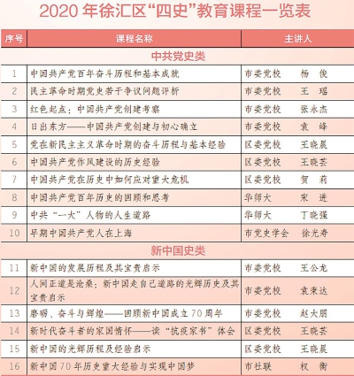 从历史中汲取智慧和力量,是党的优良传统。在建党百年之际,开展党史、新中国史、改革开放史、社会主义发展史学习教育具有重要的现实意义。 在“四史”学习教育中,徐汇区依托“500米党群服务圈”,整合区域、区属单位红色资源,开展“一个云平台、十条初心路、百个实践点、千名宣讲员、万人先锋行”的学习教育,方便广大基层党组织和党员干部就近就便学习“四史”,丰富常态化学习内容和教育载体。 一个云平台 即徐汇区“四史”学习教育云平台,在“徐汇通”APP上开设专题页面,将“党课开讲啦”“研习汇”、“新思汇”、“网上党校”等学习资源进行线上一体化整合使用。 十条初心路 即徐汇区“四史”学习教育主题教学线路,具体包含4条特色线路和6条精品线路,整合区域内革命历史教育资源,方便广大党员参与“行走中的党课”。 百个实践点 即徐汇区“四史”学习教育百个实践基地,包括区域内革命遗址遗迹、纪念场馆、爱国主义教育基地等,方便广大党员群众就近就便开展学习教育。 千名宣讲员 即徐汇区“四史”学习教育群众身边的千名宣讲员,包含党校、高校教师、党史国史专家和“汇讲团”、“五老”报告团等多元力量,深入党员群众宣讲“四史”。 万人先锋行 即徐汇区“学四史、作表率、促发展”万名党员先锋行动,具体包括8个专项行动,响应“上海先锋行动”,引导党员领导干部和广大党员立足岗位、建功立业,将“四史”学习教育成效转化为推动事业发展的强大动力。 这里,一体化整合了徐汇“四史”学习教育“党课开讲啦”、“研习汇”、“新思汇”、“网上党校”等特色学习资源。 “党课开讲啦”活动是徐汇区贯彻落实中央组织部和市委组织部相关要求,在全区范围内开展的集中性党员学习活动。活动旨在加强和改进党员经常性教育,不断丰富党员教育内容体系,通过整合一批优秀党课资源、培育一批优秀党课主讲人、开发一批优秀党课课程、用好一批党课宣讲推广载体和阵地,强化共享共用,从而引导广大党员、干部进一步厚植对马克思主义的信仰、坚定对中国特色社会主义的信念、增强实现中华民族伟大复兴中国梦的信心。 “研习汇”是徐汇区在“不忘初心、牢记使命”主题教育中创设的开放式组织生活品牌。活动旨在把学习交流平台办到党员群众“家门口”,创新“现场对话+线上直播”的方式,运用基层党组织涌现出的身边人、身边事,聚焦群众最关心、最直接的现实问题,聚焦基层党员在服务群众、作用发挥等方面的短板问题,引导党员查找差距、研究对策、交流提高,进一步汇集党员、汇通思想、汇聚力量。“研习汇”举办至今,在线学习的党员群众达240万人次。 “新思汇”是徐汇区基于新时代文明实践中心策划推出的理论宣讲活动。活动旨在打造群众身边的理论大课堂,通过专家群众互动、理论实践互融、场内场外互联、线上线下互通的方式,汇聚民意、汇聚民智、汇聚民心,创建理论具体可感、群众愿意倾听、资源开放共享的学习讲堂,让党的创新理论“飞入寻常百姓家”,形成具有徐汇特色的习近平新时代中国特色社会主义思想宣传教育品牌。“新思汇”第一季采用一街镇一主题的形式,共设13讲。 “网上党校”学习平台是徐汇区研发推出的党性教育资源信息库之一。平台充分依托区域化党建单位教育资源优势,运用多媒体信息技术,采用微视频、微场景、微图册等形式,将传统线下学习培训模式变成线上开放式课堂,使广大党员和基层党组织能够更加方便、快捷地享用优质党课教育资源,促进党员教育质量不断提高。平台目前已围绕“四史”学习教育推出了《小康时代话小康》、《共和国历史上的徐汇记忆》等一批精品视频课程。(上海徐汇)
