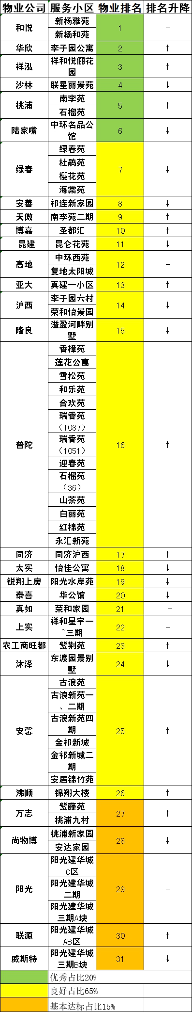 桃浦镇住宅小区物业服务排名(2019年7月)