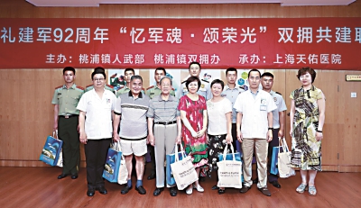 一腔豪情,唱响时代颂歌,一份忠诚,歌颂祖国雄壮,用青春刻画信念,用生命书写着辉煌,他们的名字叫中国人民解放军!为庆祝中国人民解放军建军92周年,桃浦镇开展了系列活动,庆祝节日。 7月30日,桃浦镇人武部、桃浦镇双拥办和上海天佑医院联合举办的“忆军魂·颂荣光”双拥共建联谊活动。 镇党委委员、人武部部长陈火春发表讲话,他勉励大家继续保持和发扬“退役不退志、退伍不‘褪色’”的好作风、好品质,在桃浦镇的各个领域建功立业。镇相关部门将继续组织开展双拥共建活动,继续做好退役军人等优抚对象的服务工作,继续关注关爱退役军人这一群体。 老兵代表、天佑医院院长蔡剑飞在致辞中表示,天佑医院将不忘“战友情”,为生活在桃浦镇的“老战友们”提供更好的医疗健康服务。在今后的双拥工作中,医院将增强新时期双拥工作的责任感,进一步推进双拥工作深入开展。 会上,镇人武部副部长李建国、退伍老兵郑天民、天佑医院护理部主任凌云霞、天佑医院神经内科黄树其、武警普陀二大队崔高健、同济大学老科协蔡祖元、天佑医院呼吸内科叶俊、上海市消防救援总队普陀支队桃浦特勤中队指导员曾保森分别讲述了自己当兵时的感悟。 最后,双拥双拥共建联谊活动在参会人员齐唱《咱当兵的人》歌曲声中圆满结束。