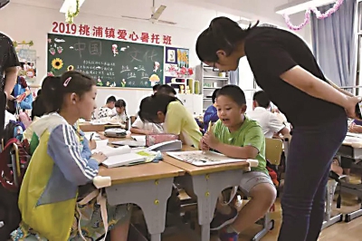 7月8日,桃浦镇爱心暑托班再次来袭,近60名桃浦小朋友将与班主任、志愿者一起共同度过一个精彩的夏天。 记者 王家欣 整理报道 安全是前提 “安全”是桃浦镇小学生爱心暑托班办班的前提,为保证暑托班井然有序,桃浦镇前期做了大量的工作,教室布置、物资配给、午饭营养搭配……一丝一毫不容马虎。 开办当天,桃浦城管中队、特保、志愿者等一起迎接孩子们的到来,此次晨检邀请了上海交通大学医学院的医生,为孩子们的身体保驾护航。教室门口,家长和小朋友们在指定地点签到,规范使用接送卡接送。 专业师资和课程 据悉,桃浦暑托班每班配备了1名班主任,1名班主任助理,5名大学生志愿者,2名高中生志愿者。班主任教师、大学生志愿者、高中生志愿者分别来自上海师范大学、桃浦中学。孩子们将通过寓教于乐的方式,贴心照料孩子们学习、生活等各方面。 爱心暑托班,快乐不简单。希望孩子们在大家的共同呵护下,度过一个寓教于乐的暑假。