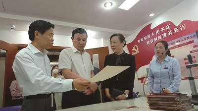 市退役军人事务局副局长包尔基指出,要改革创新,争取形成推进退役军人服务保障体系建设的长宁经验。副区长孟庆源指出,要严格标准,夯实基础,提升服务站点建设水平。会后,领导同志参观天山路街道退役军人服务站建设情况。图为领导同志检查工作记录。