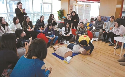 近日,潍坊新村街道党建办及红十字会在双鸽大厦党建服务站开展了一场都市生存系列课程之急救小课堂——心肺复苏的“黄金四分钟”,吸引了潍坊辖区内的众多楼宇员工踊跃报名参加。 课上,来自浦东新区红十字会的颜老师用通俗易懂的语言,生动、细致的向大家讲授了突发事件的应急必备常识、心肺复苏的标准动作等。颜老师主要对心肺复苏进行了现场示范和操作训练。在讲解心肺复苏时,老师用理论讲述和实际演示,对徒手心肺复苏的全过程“判断患者有无意识、呼救、开放气道、人工呼吸、胸外心脏按压”进行了详细的讲解,对每一环节的体位及各种手法等细节都一一进行详细的演示。为了能够更好的普及知识,现场还邀请在场的小伙伴一起进行实际操作,掌握手法技巧。大家经过一轮轮的练习,逐渐掌握了心肺复苏等急救知识和技能。 课后,大家纷纷表示,“今天用这样的实操方式来学习,这些急救知识,我一定不会忘。”通过此次急救课堂,提高了社区居民对心肺复苏的认识程度,增强了在突发状况下的应急自救和互救能力。(服务办、党建办)