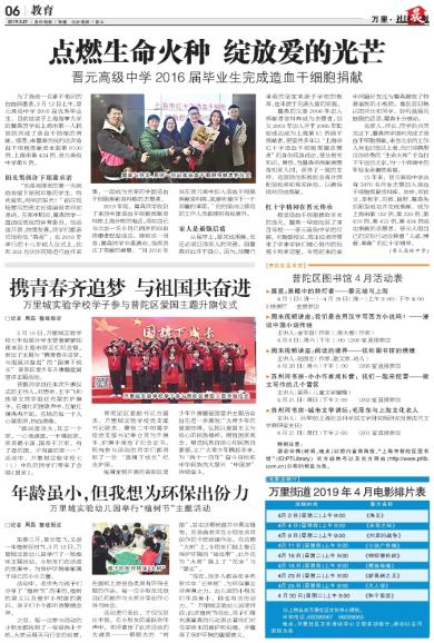 为了挽救一名素不相识的白血病患者,3月12日上午,晋元高级中学2016届优秀毕业生、目前就读于上海海事大学的瞿森同学在上海市第一人民医院完成了造血干细胞的捐献。据悉,由瞿森完成的这次造血干细胞捐献是全国第8100例、上海市第434例、晋元高级中学第5例。 阳光男孩许下郑重承诺 “他是我接班的第一天就给我留下深刻印象的学生。特别爱笑,特别的阳光!”前往现场慰问的班主任陈晶君老师如是说。在高中期间,瞿森同学一直担任班级的体育委员,他活泼开朗、热情友善,同学们都亲切地称他“森哥”。在2016年举行的十八岁成人仪式上,他和303名伙伴现场进行血样采集,一起成为光荣的中国造血干细胞捐献资料库的志愿者。 2018年底,瞿森同学收到了来自中国造血干细胞捐献资料库上海分库的电话,得知自己与北京一名小自己两岁的白血病患者配型成功。接到这一消息,瞿森同学非常激动,当即表达了捐献的意愿。“自2016年我在晋元高中加入造血干细胞捐献资料库,就意味着许下一个郑重的承诺。”他的坚决让接洽的工作人员都感到有些意外。 家人是最强后盾 从程序上,要完成捐献,他还必须征得家人的同意,但瞿森对此并不担心。因为,他履行承诺的坚定来源于学校的教育,也来源于充满大爱的家庭。 瞿森的父亲2000年加入捐献者资料库成为志愿者,伯父2003年加入并于2005年配型成功成为上海第51例造干捐献者,更坚持多年以“上海市红十字造血干细胞捐赠志愿者”的身份现身说法,普及相关知识。果然,当瞿森将捐献意愿告知家人时,获得了一致的支持,还陪同他积极配合高分辨配型检测和相关体检,以确保顺利完成捐献。 红十字精神在晋元传承 接受造血干细胞提取手术的当天,瞿森一早就收到了来自母校——晋元高级中学的问候。刘璇副校长、班主任老师带来了学弟学妹们精心制作的祝福卡和幸运星。专程赶来的高中同窗好友还为瞿森播放了特意录制的小视频,看到昔日熟识的师长和同学,聆听温暖而鼓励的话语,瞿森十分感动。 在家人、师长、同学的共同见证下,瞿森同学顺利完成了造血干细胞捐献。来自北京的工作人员也已抵达上海,他们将携带这份珍贵的“生命火种”于当日下午返回北京,为一个病痛中的年轻生命重燃希望。 15年来,晋元高级中学共有3470名师生志愿加入造血干细胞捐献资料库。其中,郑钦文、李枑宇、刘辉、田野、瞿森先后配型成功并完成捐献,成为上海市第182例、第220例、第410例、第419例、第434例成功捐献的志愿者。晋元人用自己的实际行动诠释着“人道、博爱、奉献”的红十字精神。 (晋元高级中学)