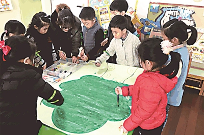□记者 周晶 整理报道 阳春三月,草长莺飞,又是一年植树好时节。3月12日,万里城实验幼儿园举行了一场趣味主题活动,小朋友们在活泼的氛围中,为保护环境奉献属于自己的小小力量。 活动中,老师先与孩子们分享了“植树节”的来历,植树的意义以及爱护小树苗的常识,孩子们个个都听得聚精会神。 之后,每一位参与活动的小朋友都收到了一张绿色小卡纸,大家运用天马行空的创意,在画纸上绘出各类具有环保主题的作品,每一位小朋友还就自己的画作与大家分享创作心得与体会。 活动进行至此,才仅仅到达半程。在小朋友的雀跃欢呼声中,老师拿出了此次活动的大道具——一颗硕大的“树苗”,其实这颗树苗并非真实植物,而是由老师及小朋友共同创作的卡纸绘画作品。在这颗“大树”上,小朋友们挂上象征保护环境的“绿丝带”,此外还为“大树”挂上了“花朵”与“果实”。 “现在,很多人都会在手机软件中‘云种树’,为环保事业尽绵薄之力,幼儿园的小朋友们年龄虽小,但也有这份动力。”万里城实验幼儿园老师说:此次植树节活动,孩子们用充满童真的行动表达着他们对花草树木的爱护和祝福,并懂得了保护环境的重要意义。