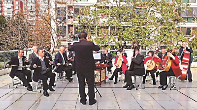 深秋暖阳日,阵阵悠扬的乐声从万里颐华片区的阳台飘出,瞬时阳台成了舞台、阳光变身灯光……11月30日下午,万里街道在颐华片区的空中花园露台上举办了一场别样的音乐会——阳台音乐会。 这场家门口的音乐会很特别,没有精致的舞台,没有绚烂的灯光,仅有万里民乐队和两台音响。民乐合奏《花好月圆》、《我和我的祖国》、《弹起我心爱的土琵琶》、《喜洋洋》;二胡齐奏《赛马》,笛子独奏《扬鞭催马运粮忙》……耳熟能详的民乐声缓缓回荡在颐和华城小区上空。不时有路过的居民驻足探寻聆听、品味,不少居民探出身子站在自家阳台上静静欣赏着这场别样的演出。 万里民乐队成立于2016年,是上海音乐家协会民族管弦乐委员会挂名的团队,45名队员中不少都是万里的市民,他们因为共同的爱好——民乐而走到了一起,每周排练,一练就是4年多,他们积极参加市、区、街道各级演出活动和比赛,曾先后荣获2017年新场镇丝竹邀请赛银奖、2018年崇明区江南丝竹展演银奖。 据悉,万里民乐队被评为2018-2020年上海音乐家协会民族管弦乐专业委员会“团体会员单位”;获得第三届“山阳之春”非职业优秀乐团邀请赛银奖;第14届长三角民族乐团展演“特色演奏奖”等近十个重要奖项。 这场沉浸式的演奏实实在在地将社区文化精品送到了居民的家门口,以文化滴灌的方式潜移默化地营造和谐的万里人文环境,对于周边的居民而言,确实是一种特别的体验。 错过演出的居民千万别遗憾,接下来,街道还将推出系列阳台音乐会专场,包括管弦乐专场、葫芦丝专场、手风琴专场,让我们共同期待下一次的惊喜。