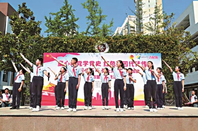 6月6日,上海市晋元高级中学附属学校及西校真金路校区举行“童心向党学党史,红色基因代代传”——2021年万里街道“国旗下成长”上海青少年升国旗暨爱国宣讲主题活动。本次活动由共青团上海市委指导,共青团普陀区委主办,共青团普陀区万里街道工作委员会、万里街道少工委、上海晋元高级中学附属学校及西校共同承办。 今年是中国共产党建党100周年。峥嵘岁月,意气风发正少年。活动伊始,学生代表王文萱同学做《童心向党学党史,红色基因代代传》爱国主义宣讲——“百年前,中国满目疮痍;百年后,中国正值盛世。如今,早已不用我们用血肉之躯筑起海晏河清、太平盛世。但作为少先队员,我们需牢牢谨记——眼下的年华不可虚度、不可妄为、不可挥霍,因为我们如今用脚步丈量的每一寸土地上都曾浸染着先辈的血泪,更流传着先辈的传奇,怎能有负期待?中国共产党党史大气恢弘,青年少年学习党史,方能知生前事,立少年志——青春的底色是爱国。王文萱作为一名大队委员,以少先队员的身份,立志传承红色基因,争做新时代好少年。 从少先队员到共青团员,是人生经历的一次蜕变,是青春记忆的开始,也是成长道路上一座不可磨灭的里程碑。学校青年党员教师杨婧带来主题宣讲。 初心激发创造,使命铸就辉煌。百年党史,也是一部一批批共产党员为了理想信念前仆后继的奋斗史。上海吉岛实业有限公司经理陆俊带来《学党史,强信念,跟党走》宣讲。 活动现场,学校还发起了“小手牵大手、共筑防疫线”的活动倡议。学党史,强信念,跟党走,行胜于言,当前新冠疫情的阴霾仍未散去,战新冠、种疫苗、筑屏障!接种疫苗是战胜疫情的最有效措施之一,希望所有的同学们,可以小手拉大手,陪伴、发动、督促自己的家人积极接种新冠疫苗,构筑全面免疫屏障。