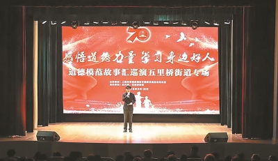 为提高城区文明程度和市民文明素质,切实推动道德模范崇高精神走进基层,由黄浦区文明办主办,东方网和五里桥街道联合承办的“感悟道德力量·学习身边好人”——道德模范故事汇巡演五里桥街道专场活动于9月18日下午在五里桥社区文化活动中心举行,268名社区各界人士出席并观看演出。 活动现场,观众们观看了根据第四届全国道德模范提名奖陶依嘉30年如一日为民服务事迹改编的小品《初心》;根据第二、第三届全国道德模范提名奖项全雄反扒事迹改编的评书《项英雄智擒五鼠贼》以及关于2018感动上海年度人物提名奖黄俊事迹的VCR;聆听了诗歌朗诵《“浦”通的一天》,讴歌了道德模范、最美志愿者、黄浦好人的精神。现场,项全雄与社区居民现场互动交流,耐心解答社区居民关心的问题,告诉大家抓贼从来不担心被报复,寄语在场居民“凡人善举不在大小”,号召大家要向先进模范学习。 此次巡演围绕“感悟道德力量·学习身边好人”,将道德模范的先进事迹以“故事汇”的形式呈现,把道德的崇高力量与艺术的独特魅力巧妙结合在一起,促进社会道德水平和文明程度进一步提升,让广大市民群众体味他们平凡中的伟大、坚持中的坚韧。 据悉,五里桥街道是“感悟道德力量·学习身边好人”道德模范故事汇巡演第二站,巡演活动将于10月底前陆续在豫园街道、上海市格致初级中学、上海市黄浦区教育学院附属中山学校,以及上海市大同初级中学等单位进行巡演,欢迎社区各界人士踊跃报名观看演出。