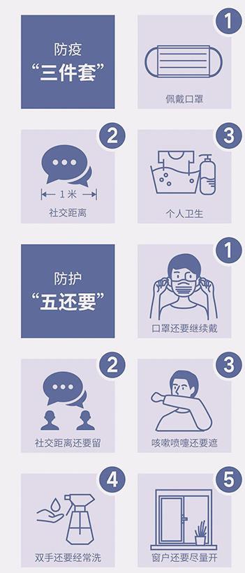 冬春季是呼吸道传染病的高发季节,今年更是面临新冠肺炎和呼吸道传染病的共同威胁。近期,国内连续出现新增本土新冠病例,且呈零星散发和局部聚集性疫情交织叠加态势,当前仍然不能放松警惕。 疫情防控三件事务必要落实:①减少出行要落实;②减少聚会要落实;③科学防护要落实。 一是减少出行要落实。春节即将到来,期间要合理安排行程,非必要不出行,鼓励错峰返乡返岗。如果必须要跨地区出行,务必提前了解当地的疫情形势和防控政策,了解目的地近期是否有病例或疫情发生,中高风险地区请暂缓出行。乘坐飞机或火车要备好口罩、免洗手消毒剂等物品;遵守秩序、有序排队,全程佩戴口罩;途中做好手消毒等个人防护,尽量减少接触公共物品,在公共交通工具上尽量避免非必要的进食;妥善保存票据以备查询,同时做好旅途中的健康监测。特别提示,对于一些老年人、慢性病患者、孕妇等人群,不建议出行。 二是减少聚会要落实。尽量减少聚集性活动,单位、家庭、朋友聚会,一定要做好通风和个人防护,合理控制聚会时长;对公共用品做好清洁消毒,及时清理,保持环境清洁。在聚会中注意做好个人卫生,使用公筷公勺;在人群聚集场所务必遵守秩序、避免拥挤,自觉与他人保持一米社交距离。尤其提醒,有发热、咳嗽等症状的人员,应避免参加聚集性活动。 三是科学防护要落实。广大市民仍要牢记防疫三件套:佩戴口罩、社交距离、个人卫生,坚持“防护五还要”,为自己穿上“无形防护服”,同时掌握“七知道”。