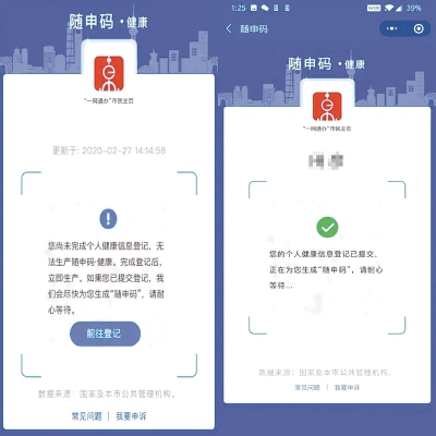 上海一网通办“随申码”已经上线,依托上海市大数据资源平台汇聚的国家、本市公共管理机构数据,经过数据建模,分析评估后,测算出红色、黄色、绿色三种风险状态,方便市民工作、生活、出行,助力企业平稳复工复市。这款“随申码”怎么用?以下10组问答可以帮到你。 Q:何时获取“随申码”为宜? A:随着复工复产、出入各类公共场所等越来越多的场景需要出示“随申码”,为确保及时使用、顺畅通行,强烈建议提前通过“随申办”移动端(APP、微信和支付宝小程序)注册为实名用户并获取“随申码”,减少现场操作等待时间。 Q:在外地获得“随申码”绿码,来沪后可以直接使用吗? A:来沪人员进沪时,按照上海进沪相关规定,需通过“随申办”APP、“随申办”微信小程序、支付宝小程序或“健康云”平台完成“健康信息登记”。登记完成后,根据实际情况,来沪人员可获得相应颜色的“随申码”,目前可在本市范围内使用。 Q:去线下政务服务大厅办事要用“随申码”吗? A:为进一步加强新冠肺炎疫情精准防控工作,高效管控线下政务服务大厅。2月24日起,上海市所有线下政务服务大厅,推出随申办“随申码”服务,办理业务的人员需要出示“随申码”,显示绿色的方可进入大厅办理业务。 Q:可以变更头像吗? A:不可以。“随申码”所显示照片是基于“一网通办”统一照片库生成,目前,统一照片库采集了以下范围的照片信息:1、本市户籍人员的照片信息;2、在本市办理过身份证或居住证等相关业务的外省市户籍人员的照片信息。 Q:姓名显示错误怎么办? A:通过“随申码”下方的“我要申诉”留言,市大数据中心会与您联系核实身份信息,尽快修改更新。 Q:“随申码”显示和市民实际情况不符怎么办? A:若“随申码”显示与市民实际情况不符,或者对“随申码”的数据准确性有疑议,通过“随申码”下方的“我要申诉”留言,市大数据中心会及时会同相关部门完成信息核验,并予以回复。 Q:“随申码”每日申请总量是否存在上限? A:不设“随申码”申请上限。 Q:获取“随申码”出现卡顿,或者“随申码”信息显示不全是什么问题? A:目前“随申码”处于试运行阶段,在用户使用高峰时,可能出现卡顿或获取异常等问题,可请稍后再试。同时,市大数据中心将加快优化迭代,提升响应速度,确保您的正常使用。 Q:目前尚未在沪,是否可以“凭码”入沪复工? A:来沪人员须按照上海进沪相关防控规定,通过“随申办”(APP、支付宝小程序、微信小程序),或者“健康云”平台完成线上“来沪人员健康登记”,主动上报个人信息,登记完成后才可获取“随申码”。 Q:“随申码”是否可以作为企业复工凭证? A:企业复工仍须按照本市有关企业复工防控要求进行,做好复工前准备,可通过“一网通办”总门户、“随申办”移动端或“健康云”平台,完成企业复工人员网上登记,同时加强复工后管理。“随申码”有利于减轻工作人员审核压力,提高审核精度。