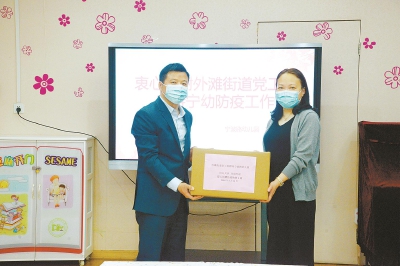 5月15日,街道党工委副书记许金武和街道妇联主席叶琴琴来到宁波路幼儿园、南京东路幼儿园,对幼儿园开园前的准备情况进行走访,查看园区环境和消毒情况,并送去了一批儿童专用口罩。 许金武在详细了解幼儿园开园前准备工作后说:当前疫情基本稳定,外来输入也是一个不可忽视的问题,要强化园内管理,做好体温检测、食品安全、环境清洁、消毒通风及消防设备的正常使用等工作,要以保障全体师生的身体健康为前提,对家长以及幼儿加强防护措施的宣传,不能掉以轻心,把园内的工作做全、做细,确保万无一失。 此次开园走访活动既加强了社区和幼儿园之间的联系,增进了社区和幼儿园的良好感情,同时为社区幼儿园开园安全打下了良好基础。 (通讯员 叶琴琴)
