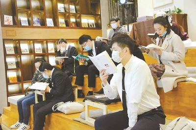世界读书日当天,黄浦区文明办、外滩街道联合读者·外滩旗舰店共同举行“静心阅读一小时”沉浸式阅读体验活动。参与活动的白领将手机交由工作人员保管,静心阅读图书。