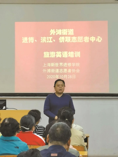 □通讯员 马骁龙 在外滩,志愿者常年值守服务于滨江观景平台、交通路口等处,不时会有外国游客向他们问询,但由于他们年龄普遍偏大,没有基础的语言储备,所以常常是手忙脚乱或者爱莫能助。 在第三届中国国际进口博览会召开前夕,为进一步提高志愿者综合素质和服务水平,规范化、常态化开展好志愿服务活动,外滩街道社区志愿服务中心携手上海新世界进修学院对首批52名志愿者开展旅游英语培训。 通过通俗易懂的语言培训,不仅增强了志愿者们面对外国游客时开展交流服务的知识、技能储备,更重要的是增强了他们的自信心。不少老年志愿者表示,原来学英语没有想象中的那么难!原来大家都可以说英语! 志愿者为城市奉献,街道为志愿者“充电”。相信在这样一支“叫得应、拉得出、打得响”的志愿者队伍助力下,外滩街道的各项工作一定能做实、做好。