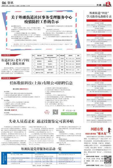关于外滩街道社区事务受理服务中心疫情防控工作的告示