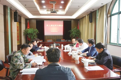 □通讯员 刘虎 近日,小东门街道召开党工委议军会议。街道党工委书记周诚传达了上海警备区党委十三届二次全体(扩大)会议精神和区委党管武装工作会议精神。街道武装部部长刘虎向党工委汇报了小东门街道武装部第一季度工作情况和第二季度工作计划。 会上经过讨论通过了《关于“小东门街道2019年度民兵组织整顿实施方案》《关于基干民兵干部建议名单》和《关于在民兵分队中预设党组织的请示》,各党工委委员围绕武装部工作发表了意见和建议。 周诚指出:一是要高度重视。民兵调整改革是习近平总书记亲自部署推动、事关全局的政治任务。党工委要有政治担当,一定要按照上级的有关要求,高标准完成工作任务。二是要注重实效。街道按照上级的有关文件讨论通过了民兵组织整顿实施方案,各级各部门一定要按方案要求抓好落实,切实做到工作见底、问题清零、指标过线。同时今年也是黄浦区创建双拥九连冠的关键时期,这项工作也要举全街道之力抓紧抓好。三是要压实责任。街道武装部要切实发挥职能作用,各单位也要落实专人负责。对工作中不履职、打折扣、走过场要严肃追责。