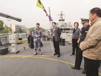 □通讯员 丁玉娟 恰逢中人民海军成立70周年纪念日,为进一步弘扬拥军优属、拥政爱民的光荣传统,巩固和加强军政军民团结,小东门街道办事处主任包童斌、副主任夏宜等一行前往中国人民解放军92993部队进行走访活动。 街道领导一行受到了夏志法支队长的热情欢迎,受邀参观了“连云港舰”、“三门峡舰”和舰队搭载的武器装备展示,接受了一次印象深刻的军事国防教育专题课。 座谈中,“连云港舰”、“三门峡舰”的舰长分别就护卫舰的情况做了细致介绍,夏志法支队长就目前国际形势和海军发展情况进行讲解。包童斌主任强调将继续发扬双拥工作的优良传统,进一步加强军地交流。 通过此次海军纪念日的走访,进一步增强了国防观念和双拥意识,巩固双拥工作的基础,增进了军民鱼水情,推动深度融合。