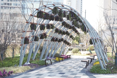 口袋公园也被称为袖珍公园,指规模很小的城市开放空间,常呈斑块状散落或隐藏在城市结构中,为当地居民服务。根据本市绿化部门]定义,目前从面积上来定义的“口袋公园”——般是指面积在300-3000平方米之间的绿地。 藏身于黄浦滨江旁十六铺码头的“金融品巷·藤蔓花园”就是这么一片“口袋公园”。这里北接太平洋保险大厦,南侧毗邻交通银行大楼,东临外马路及十六铺二期,西临中山南路,占地面积约1616平方米。 藤蔓花园以“紫藤廊架,林间漫步”为特色植物主题,依托周边金融集聚带的人文内涵,还自然于黄浦滨江。丰花紫藤、银藤、大游行、蔓长春、络石、香樟、朴树、金桂、红枫等40 余种植物将这里装点成“植物海洋”。 值得一提的是,藤蔓花园还利用多种藤本植物的垂直绿化拓展绿化空间,结合搭配种植,营造出一种源于自然、高于自然的植物景观,提高整体绿化品质,营造多彩缤纷、生机盎然的城市精品花园。园内的路面还写满了上海建筑的历史,仔细逛逛,会发现许多“故事”。 自藤蔓花园开放后,吸引了不少附近居民和上班族纷至沓来,成为大家观赏风景、放松身心,了解外滩历史、普及金融知识的休憩休闲场所。 (上海黄浦)