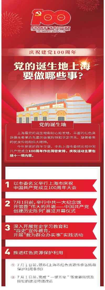 庆祝建党100周年,党的诞生地上海要做哪些事?