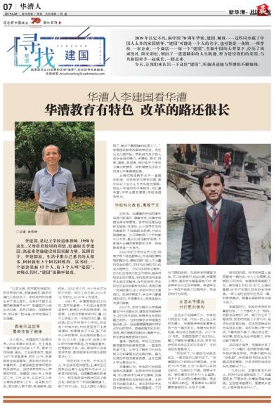2019年注定不凡,新中国70周年华诞,建国、解放……这些词承载了中国人太多的家国情怀。“建国”可能是一个人的名字,也可能是一条路、一所学校、一家企业、一个商店……每一个“建国”,在新中国的大背景下,经历了风雨洗礼、阳光彩虹,划出了一道道精彩的人生轨迹,努力建设我们的家国,与共和国牵手一起成长,一路走来。 今天,让我们来认识一下这位“建国”,听他讲述他与华漕的不解情缘。 □记者 侯传婷 李建国,是纪王学校退休教师。1958年出生,父母带着殷切的期望,给他取名李建国,寓意希望他建设祖国贡献力量。说到名字,李建国说,生活中跟自己重名的人很多,同村就有3个同名同姓的。读书时,一个宿舍里面12个人,有3个人叫“建国”,老师点名时,“建国”出勤率很高。 “以前上课,老师都吃粉笔灰,现在是用白板、多媒体教学,教学环境比以前好多了,学校老师的待遇也有了很大提升,这有利于提升全镇的教育教学水平”李建国开心地告诉记者,虽然已退休,但提到学校,依旧是一脸兴奋,对学校情况了如指掌。 做老师这些年最牵挂孩子健康 从小到大,李建国学习成绩优秀,1974年高中毕业后,在上海县广播站做实习记者3个月,曾学习写报道、通讯。之后回家务农,直到1977年恢复高考,同年12月,李建国参加首届高考。原本报名同济大学建筑学,后被录取到安亭师范学校英语专业,当时该学校专为小学提供师资。李建国1980年2月参加工作,工作38年,先在纪王小学从事英语教学12年,后来转为行政,曾任职人事干部、英语教导、副校长。2002年6月,中小学合并为纪王学校,担任工会主席,2016年12月卸任,2018年2月退休。 1980年,李建国刚参加工作时,是学校里第一个科班出身的英语老师,教授五六年级英语课。他感慨,以前四册教材的词汇量,比不上现在小学一年级的词汇量。那时候,纪王学校是中心学校,然后各个村有村校,村校里面是不上英语课的,李建国来了之后,除了在中心学校教学,还会跑校到鹫山小学、红卫小学、卫星小学、赵家小学4所村校教授英语。在李建国看来,时常跟孩子在一起,做老师心态会变得年轻,能得到家长的信任那就更开心了。 “现在的孩子太苦,升学压力大,学生体质相对较差,上海学生近视率远远高于全国的平均水平,以前读书的时候,班里戴眼镜的没有几个,现在班级里大部分的孩子都近视,有的孩子一年级就戴眼镜了,到了初中以后,班上大部分人都近视了,高中不戴眼镜的就更少了。”李建国谈教育改革效果时说,现在从幼儿园开始,家长就为孩子投入很多金钱和精力,学舞蹈、美术、钢琴、围棋、英语等,有时候并不是孩子真正想要的,成长需要关注孩子的身心平衡健康发展。 上海的英语教学水平一直跑在前面,对学校学生要求好高,高中毕业之后口头交流沟通无障碍。现在小学使用的牛津教材,词汇量丰富,对学生要求更高,学起来难免吃力。 学校特色教育,寓教于乐 近年来,华漕镇的学校的硬件设施不断提升,诸翟学校、华漕学校建设得非常漂亮,各学校还建设创新实验室、电视台,从小培养学生的兴趣爱好,引导其职业发展,开设云录播教室,公开课教授几个学校都可以共享,最大化利用教学资源,不断提升全镇的教育教学水平,特色教育更是一大亮点。 2002年纪王学校合并以后,培育了两个特色教育点,开设消防博物馆和陶乐坊,镇相关部门投入了大量的资金和精力。学校与区消防中队结成共建单位,不仅为本校学生教学,还为社区居民乃至全市居民,提供消防安全知识普及,学校安排老师或者学生担任讲解员,为外校老师、学生和社区居民讲解安全知识。两周开展一次消防演习,在小学和中学交叉着进行。在老师带领下,学生学习掌握消防知识,手捂着毛巾,亲身体验火灾演习疏散。 2003年,学校与陶艺大师陶昌鹏合作开办陶乐坊,请陶老师辅导学生,担任技术指导,特聘两位专职的陶艺老师,一位学校数学老师是陶艺爱好者,还一位是景德镇陶瓷学院专业毕业的老师,课程把陶艺和历史、地理、美术等教学相结合,寓教于乐,学生更容易接受消化知识。 值得一提的是,学校几任校长都很重视特色教育发展,一直坚持传承下来,让学生了解学习中华传统文化和掌握生活实践技能,最大化调动学校的教育资源,全方位提升学生素质水平。 李建国认为,学生的行为规范培养也很重要。如果老师字写得漂亮,可以影响学生写字也漂亮,但是现在随着移动互联网的发展,全民的书法都在退化,语文老师对学生写字影响很大,学校要重视一下行为习惯的培养,先培养老师硬笔书法,可以定期举行书法比赛。李建国上课时,看到学生握笔姿势不对,便会帮学生纠正写字姿势,希望学生从一年级开始练习正确写字,养成好的行为规范。 生活水平提高出行更加便利 生活水平也提高不少,衣食住行的变化飞速。作为一位土生土长的华漕人,李建国亲身体验着身边的一点一滴的变化。伴随大虹桥的发展,周边动迁相继完成。2017年12月底,李建国签掉了动迁协议,随儿子搬到华漕镇上生活,家有86岁的老母亲住在纪王老房子,平时会回去看看老人。 “现在好了,74路起点站就在纪王,一部车就可以到市区了。”李建国回忆之前的出行感叹道,上世纪70年代前,公交74路可以开到北新泾,但是纪王不通,想要去市区,要沿着苏州河步行4公里路,花半个多小时到华漕南华路,乘坐74路到北新泾,再换乘坐54路到