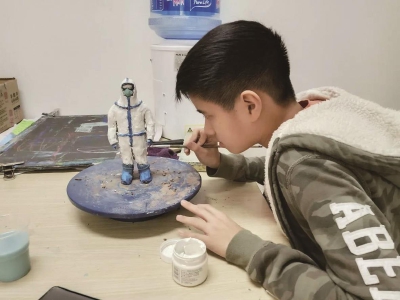 介绍:小朋友用颜料给天使的雕塑涂上颜色,表达对他们的敬畏之情,每一位天使都是英雄,因为他们夜以继日的无私奉献和敬业付出,才有了我们的岁月静好。这个世界上,总有人在用他们的方式,悄悄地爱着我们。