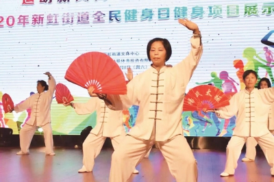 今年8月8日是全国第十二个全民健身日。在严格落实各项防疫措施的前提下,新虹街道在新虹文体中心开展“运动新风尚·凝聚虹力量”全民健身日活动。“全民”二字意味着不分年龄、不分性别,也不论身份职位。在新虹,体育运动不仅融入居民生活,更用文体的方式凝结起新虹力量,让新虹社区大家庭更温暖、更团结。 炫动 全民大闯关 “运动让我充满活力”“我运动我快乐”“拜拜啤酒肚”,在“炫动健身”板块的背景板前,居民们喊出自己的“健身slogan”,留下靓照。 投壶、踢毽子、击倒保龄球、投篮、掷飞镖、玩划船机……现场设置的活动项目既有国民运动,又不乏新潮项目,适合各年龄阶段的群体参与。 现场还有组团打卡的一家子,他们几乎每年都会参加全民健身日活动:“健康是人生的财富,我们经常带着孩子一起运动,强身健体。” 魅力 全民大舞台 场地另一边,本次全民健身日活动的健身项目展示也在同步进行。各居(村)的13个健身团队齐聚现场,带来活力四射的视觉盛宴。 太极拳、健身气功因为练法简易、能够修养身心,深受群众喜爱,在新虹有着广泛的群众基础。这次展示中,有超过半数的项目为太极拳或健身气功。华美路居委的太极拳队的平均“拳龄”5到6年,队中一位年已七旬的韩先生,已经练拳10余年了,“太极拳不仅强身,还能养心。这几年,越来越多的人加入我们队伍,看得出这项运动也越来越全民化了。” 时尚新潮的橡筋操、柔力球也有不少拥趸。在万科润园活力健身操班里,既有30多岁的中青年人、也有近70岁的奶奶辈,她们是舞台上的“最萌年龄差”。在航一六柔乐球队里,还出现了“夫妻档”。橡筋操、柔力球需要大量练习才能展现出最佳效果。由于疫情影响,大家基本都是“上网课”,学习效果没有面对面好。为此,有些队伍每天都要练习3个多小时,到展示前还在突击练习:“台下练扎实了,台上才不会出错。” 健身 场馆免费开放 全民健身日当天,新虹体育中心、西华美路市民球场免费对公众开放。居民们在游泳馆享受清凉,在球馆、球场中切磋球技。 疫情进入常态化防控阶段,新虹文体中心大门口设置两名保安,全程佩戴口罩,为进入中心的居民测量体温;体育中心前台工作人员要求居民佩戴口罩,出示绿色“随申码”,测量体温并做登记后方可进入。场官方力求在保障安全前提下,开放健身场所,为居民健康筑牢又一层“安全”屏障。