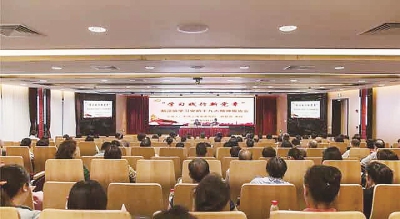 5月14日,新泾镇在驻区单位同仁医院教学中心,举行“学习宣传党的十九大精神”专题报告会。本次学习党的十九大精神报告会,新泾镇特邀中共上海市委党校科研处处长周敬青同志授课。周敬青同志的报告以《学习践行新党章》为题,围绕“党章是全党必须遵循的总规矩”、“党章的与时俱进和十九大对党章的新修改”、“对标党章作表率,‘学而懂、学而信、学而用’”三大部分进行授课辅导。新泾镇领导班子成员、全体机关干部、居民区党组织书记、鑫达实业总公司及其投资控股企业、村公司党组织负责人、“两新”组织党组织书记、各中心、站所及其他企事业单位党组织负责人、区凝聚力工程学会新泾社区分会理事、副会长、社区单位等,230余名党员群众出席会议。 (社区党建办)