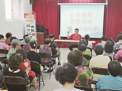 日前,双流居委会在活动室开展了健康大讲座,邀请绿园一村健康小组组长董宪华主讲。