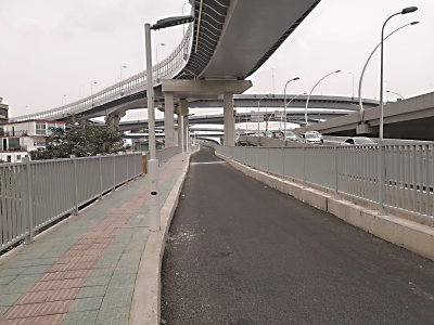 文小西 随着北横通道的北虹立交贯通,行人、非机动车去普陀区又有新路线了。近日,北虹路天山西路往普陀区方向,新增了1条跨越苏州河的人非桥,仅供行人与非机动车穿行。 人非桥桥全长约1公里,东侧非机动车道是一条黑色柏油路,西侧是人行道,中间专辟了盲道。桥的中段位置设有通道口,靠近北翟路、苏州河,并配有上下桥楼梯,不过目前仍在施工、暂未开放。人非桥是北虹路立交的一部分,行人可沿着人非桥,从北虹路天山西路一路直行至普陀区的真北路云岭西路,全程15分钟左右。 需要注意的是,人非桥的非机动车道是北向南单车道,非机动车骑行可以从真北路云岭西路一路骑行到长宁区北翟路、天山西路。如果是非机动车从长宁区前往普陀区,还是要从天山西路骑行至哈密路、老真北路。千万别走错啦!