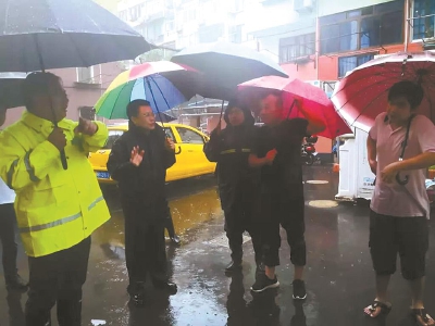 莫听穿林打叶声,何妨吟啸且徐行。竹杖芒鞋轻胜马,谁怕?一蓑烟雨任平生。——《定风波》苏轼 戴着“最强”的头衔,8月,“风王利奇马”嘶吼而至。暴雨倾盆,狂风呼啸。风雨笼罩中的斜土社区,却有一群这样的人,竹杖芒鞋、一蓑雨衣,直面风雨、挺进风雨、穿越风雨、抗击风雨,唯愿——家园平安。他们是——“守土人”。 “风王”利奇马档案 8月8日17时,受今年第9号台风“利奇马”影响,上海市风力逐渐加大,上海中心气象台发布台风蓝色预警,全市启动防汛防台四级响应。9日13时,升级为台风黄色预警,并启动防汛防台三级响应,同日18时,发布台风橙色预警,并启动二级响应。 全市高挂台风橙色、暴雨橙色、雷电黄色预警,9日下午15时开始,全区普降暴雨,到10日晚23时,台风越过本市同纬度,风雨影响减弱,防汛防台二级响应降至三级,直至11日上午10时终止防汛防台应急响应。 斜土人抗击台风实录 ●定风实录·数据 从8月9日起,3天2夜近65小时的抵御台风“利奇马”任务,斜土街道防汛指挥部安排值班值守近800人次,抢险待命人员462人;出动巡查780人次,出动抢险400余人次,转移人员207人(其中工地工人200人,居民7人),排查并处置安全高空坠物350个、其他安全隐患96个;加固修枝树木30余棵,加固拆除店招店牌35块;处理倒伏树木32棵,快速处置居民家中轻微进水23户及7条道路(大木桥路、小木桥路、茶陵路、枫林路、瑞宁路、中山南二路、龙腾大道)积水。台风期间,斜土地区整体平稳有序。 ●定风实录·未雨绸缪 “全力以赴,守护家园!” 斜土街道召开9号台风“利奇马”防御工作动员部署会。街道办事处副主任、防汛指挥部副总指挥黄根选专题部署防台方案,街道办事处主任街道办事处主任、防汛指挥部总指挥王万金做动员讲话。在建工地、应急抢险队伍、各小区物业负责人及相关防汛成员单位、部门负责人共120人参加会议。 党政班子领导带领检查人员对辖区内在建工地等重点单位开展防台防汛检查工作,实地察看各工地人员、机械的撤离情况,督促各单位加强值班值守,明确、压实地下工地、排洪防洪沟重点部位、施工塔吊、脚手架、高空物体等设备、物资的管理责任。 经充分排摸,依据《斜土街道2019年防台防汛应急预案》,街道党政班子领导带领职能部门对上海建工七建集团共128名农民工、肇清居委5名居民、日五居委2名居民进行紧急疏散安置。在大木桥路461号(社区文化活动中心)和医学院路52号两个应急避险疏散点,居民群众得到了街道妥善准备的基本生活物资保障及食宿安排。 在居民区,街道各居委展开行动,居委干部撑着伞、披上雨衣、手持喇叭便走进小区,挨家挨户上门宣传告知台风防范措施。“台风要来了,请各位居民注意安全,花盆切勿放在室外,门窗一定要关紧”…… 各小区防台防汛物资全部到位,居委干部、物业工作人员等连夜将防台防汛设施布置完毕,构筑起一道道安全屏障。 ●定风实录·现场直击 “守土有责,守土尽责!” 清晨,茶陵北路一株高约10米,胸径约60公分老榆树发生倒伏,压住路面高压线及通讯线。街道党工委书记章红兵、街道办事处主任王万金,街道办事处副主任黄根选第一时间组织开展抢险工作。区委常委、副区长王宏伟,副巡视员冯上达,区建管委主任罗鹏翀,区绿化市容局局长王缨,区应急管理局局长何鹤,徐房集团董事长华茂到现场察看并指导工作。 街道领导带领工作人员到瞿溪路、茶陵路等辖区重点区域察看店招店牌处理情况。 地区雨势最大时,斜土某小区发生外墙皮脱落,街道办事处主任王万金、街道办事处副主任黄根选赶到现场指挥处置险情。 “守土有责,守土尽责!”在居民区,居委干部和平安志愿者们冒着风雨,在小区的角角落落巡查,发现隐患第一时间处理、报告。 社区的“蓝精灵”“白衣天使”“平安橙”们,在街头巷尾、小区内外、医疗一线守护着社区平安,为居民“保驾护航”,他们是守护斜土的“彩虹”。 深夜,街道防汛指挥部灯火通明,各居委对应急响应队伍实地“点兵”。 深夜,瑞宁路凯滨路交叉口发生150米围墙倒伏,大木桥路发生树木倒伏,街道办事处主任王万金、副主任黄根选赶到现场指挥抢险工作。 深夜的居民区,一束束透亮的灯光在风雨中格外醒目,那是值守巡查的居委干部、志愿者在守护万家灯火…… ●定风实录·雨过天晴 “岁月静好,只因有你们!” 8月11日上午10时,风雨影响减弱,直至终止防汛防台应急响应。雨后的斜土社区,恢复了往日的生机活力。蓝天白云间,明媚的日光扫除了连日的阴霾。热土不语,却真实地记录下了斜土守护人的点点滴滴。岁月静好来之不易,幸福的是总有一群这样的守护者,为社区长安、百姓乐业负重前行。