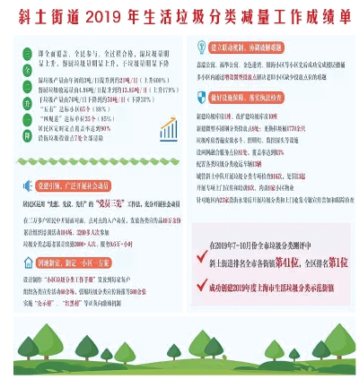 近日,斜土街道召开了“2020年垃圾分类动员部署会”。徐汇区绿化市容局局长王缨,斜土街道党工委书记黄科,街道办事处主任周莹,街道生活垃圾分类推进工作领导小组副组长及各成员参加了此次动员部署会。会议由街道党工委副书记朱琴琴主持。 街道办事处副主任黄根选在本次部署会上首先对斜土街道2019年生活垃圾分类工作进行了总结,并部署了2020年垃圾分类工作。2019年,斜土街道在党建引领下,用活“党员先想、党员先议、党员先行”的“党员三先”工作法,统一部署、全力推进,充分开展社会动员,垃圾分类工作实现“三全二升一降”(即全面覆盖、全民参与、全过程合格,湿垃圾量明显上升,餐厨垃圾量明显上升,干垃圾量明显下降)工作目标。 本次动员部署会现场还举行了“2019年度垃圾分类优秀志愿者荣誉证书”颁发仪式。2019年,斜土街道垃圾分类志愿者们细心耐心、不惧困难,值守于垃圾箱房和投放点,现场引导督促,促使居民养成“源头分类、破袋投放、定时定点”的垃圾分类习惯,提升居民参与率与投放准确率,成为一道亮丽的风景线。 垃圾分类减量工作是检验社区基层治理能力的有效手段。为切实做好2020年垃圾分类减量工作,黄科提出三点要求:一要始终保持昂扬向上的工作激情。充分发挥街道“党员三先”工作法优势,拿出时不我待、只争朝夕的精神。二要始终保持专业精准的工作作风。对标对表,知道“考什么?”,掌握“怎么考?”,做到心中有数、遇事不慌。三要始终保持率先垂范的责任担当。机关各科室、机关人员等要拿出精气神,加强指导协调,当好居民区的联络员。 王缨首先对斜土街道2019年垃圾分类工作取得的成绩给予了充分的肯定,对街道成功创建垃圾分类示范街道表示祝贺,同时提出三点建议:一是深化思想认识、提高站位,垃圾分类不是一场运动或者一次冲刺,而是精神文明建设的重要一环,需要大家久久为功,付出长期努力。二是严格对标对表、精细落实,把握新一年度测评的“高要求、严考核”。三是勇于突破难点、创造亮点,利用已经走在全区前列的优势,积极创新工作方式、积累典型工作经验。 迈入上海市垃圾分类2.0时代,斜土街道将对标全新标准、不断发力,补齐短板、持续巩固,坚决打好生活垃圾分类减量工作持久战,努力实现垃圾分类再上新台阶的工作目标,为徐汇区创建垃圾分类示范区作出积极贡献。