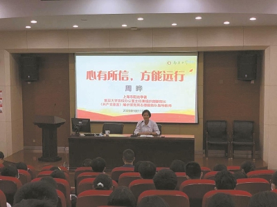 近日,南洋中学邀请了上海市阳光学者、复旦大学党校办公室主任兼组织部副部长周晔为全体师生作专题报告。周晔老师以习近平总书记给复旦大学《共产党宣言》展示馆党员志愿服务队的回信为切入点,介绍了《共产党宣言》及其首译者陈望道先生的生平和一些翻译的趣事,并总结了“望道精神”,希望南洋学子有敢于担当的使命意识。