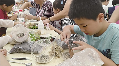 8月初,由仙霞新村街道社区服务办、仙霞社区文化活动中心主办的“文化消夏”仙霞社区公共文化服务暑期系列体验活动拉开序幕。随后,活动分别在五一、茅新、锦苑、仙二及威宁居民区举办。 虽是炎炎夏日,但每场活动都极大地激发了居民们的参与热情,200余位社区居民和中小学生亲手参与各类制作,丰富的活动让他们玩得不亦乐乎。在专业老师的指导下,参与者们从无从下手逐渐变得得心应手。大约1个小时后,大家看着自己“专业”的作品,俨然感觉自己成了“艺术家”。 活动结束后,欢乐和自豪洋溢在每个人的脸上,大家纷纷表示这样的活动非常有趣,不仅锻炼了动手能力和想象力,还能带一个作品回家,十分有意义。接下来仙霞社区公共文化服务(暑期送清凉慰问活动)还将继续在各居民区活动室展开。(社区文化活动中心)