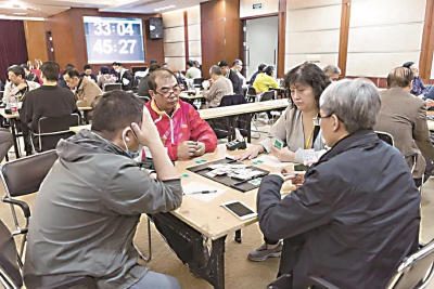 10月26日上午,上海市第三届市民运动会社区体育联盟赛暨长宁区第七届运动会“仙霞杯”上海市社区桥牌邀请赛在长宁区工人文化宫开幕。 大赛由上海市社区体育协会、长宁区体育局、长宁区总工会、仙霞新村街道办事处主办,长宁区社会体育指导中心、长宁区桥牌协会、长宁区仙霞社区体育俱乐部具体承办。上海市社区体育协会会长张祥泰、长宁区体育局局长王仁伟、长宁区总工会主席俞浩、仙霞新村街道党工委书记高峥、仙霞新村街道办事处主任周薇出席了开幕式。 桥牌作为一种高雅、文明、竞技性很强的智力性游戏,以它独特的魅力而称雄于各类牌系,风靡全球。打桥牌更需要遵守严格的一套规则,伙伴间必须保持高度的默契与合作精神,既体现了个人的判断与计算能力,又充分展示了团队协作精神。 大赛历时四天,分为公开组和老年组,来自全市各社区48支参赛队伍,将通过第一阶段的积分编排赛和第二阶段的淘汰赛、附加排位赛,一争高下。 仙霞新村街道党工委副书记、办事处主任周薇在致辞中表示,能再次承办市级赛事,是上海市社区体育协会、长宁区体育局对仙霞在全民健身工作方面的肯定和信任,也是对仙霞街道工作的促进和鞭策。仙霞街道将以赛事为契机,以牌连心、以牌会友,进一步提高办赛能力和办赛水平,推动桥牌运动的普及发展;进一步加强社区全民健身体系的建设,激发市民热爱体育,关心社区的精神,带动身边更多人参与全民健身。