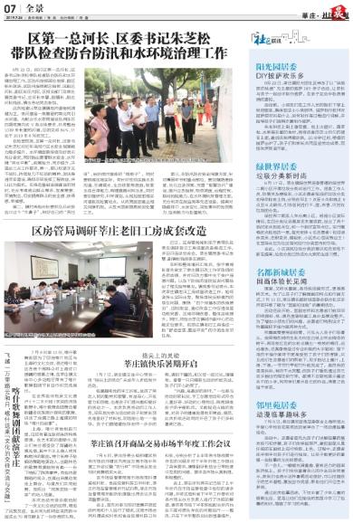 6月22日,闵行区第一总河长、区委书记朱芝松带队检查防台防汛和水环境治理工作。区防汛指挥部总指挥、副区长朱效洁,区防汛指挥部总指挥、区副总河长、副区长汪向阳,区相关部门及莘庄镇党委书记、总河长李慧,副镇长、副总河长钱彦,镇水务站同志参加。 此次检查以莘庄镇镇级河道杨树浦港为主,该河道是一条重要的南北向引水河道。为配合引水泵闸建设及消除苏四期范围内劣V类水体要求,共将整治1039米长度的河道,目前完成84%,计划于2019年8月底完工。 在检查现场,区第一总河长、区委书记朱芝松对近年来闵行区水安全保障能力稳步提升、水环境面貌持续向好表示充分肯定,同时指出要着眼水安全、水环境“两水平衡”,统筹发力、同步提升,并提出三点工作要求。第一,要以咬紧牙关不放松,持续发力不松劲的精神,加快推进项目建设,确保尽早发挥工程效益。并以此为契机,在推进基础设施建设的同时,充分考虑周边群众需求、发展需要、环境契合,切实提高群众的安全感、获得感、幸福感。 第二,镇村两级河长要抓住沿河排放口这个“牛鼻子”,种好自己的“责任田”,治好雨污混排的“病根子”。同时要根据区域实际,有针对性地实施水系沟通、引清调水、生态修复等措施,恢复水体自净能力,构建健康河网水系。同时要加强研究、科学谋划,从规划层面落实河道底泥处置站点,从政策层面建立相关保障机制,从技术层面提高底泥处置工艺。 第三,在防汛防台安全保障方面,针对薄弱环节和重点部位,要加强隐患排查,优化应急预案,完善“智慧防汛”建设,提升应急指挥、物资调度、远程控制、联动抢险能力。在水环境长效管理方面,充分利用在线监测等先进设备,提高对隐蔽排口、水质变化、突发事件的发现能力、监测能力与处置能力。