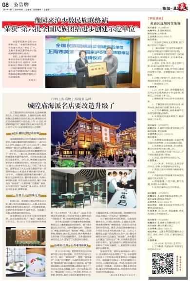 豫园来沪少数民族联络站荣获“第六批全国民族团结进步创建示范单位”