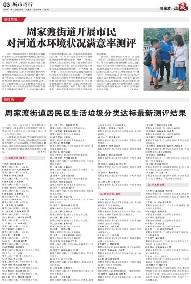 周家渡街道居民区生活垃圾分类达标最新测评结果