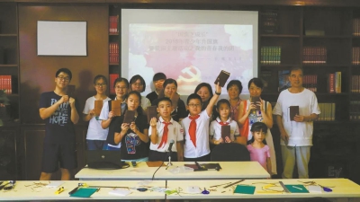 为进一步激发青少年的爱国热情,弘扬以爱国主义为核心的民族精神,引导青少年增强国家观念,增进民族自信心和自豪感,让广大青少年携起手来,为“两个一百年”奋斗目标和中华民族伟大复兴“中国梦”持续奋斗。8月19日上午,“国旗下成长”青少年升旗仪式暨“我的2035”爱国宣讲主题活动如期举行。本次活动由共青团上海市委指导,长宁团区委主办,周家桥街道、长宁区市场监督管理局、长宁图书馆承办。 伴随着雄壮的《义勇军进行曲》,现场的青少年昂首挺立,大家敬礼并注视着熠熠生辉的五星红旗,飘扬的红旗在大家的凝视下冉冉上升。现场,一股神圣之感油然而生。在升旗仪式后,举行了爱国宣讲等系列主题活动。来自古南居民区的朱喆毓和新天地居民区的徐子越以我的2035为主题深情畅享。 升旗仪式后,孩子们参观了24小时图书馆。100平方米的迷你图书馆,只需一张读者证,17000余册图书让你全天候免费借阅,更重要的是24小时图书馆通宵无人值守。这是长宁区图书馆推出的创新举措,打破了传统图书馆在服务时间上的障碍,实现了“永不闭馆”。 活动最后,孩子们在指导下做了一本独一无二的团徽印刻版皮具手帐,为这有意义的一天画上了圆满的句号。