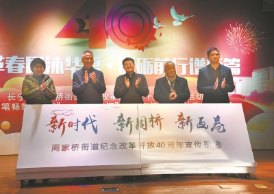 为纪念改革开放40周年,全面贯彻落实习近平新时代中国特色社会主义思想和党的十九大精神,进一步振奋精神、鼓舞斗志,满怀信心,投身于社区建设。2018年12月13日,周家桥街道举办“改革春风沐华夏 砥砺前行谱新篇”周家桥街道纪念改革开放四十周年系列活动暨“神笔畅想2035”——“马良杯”征文绘画比赛颁奖仪式暨街道艺术节闭幕式,中共长宁区委常委、组织部部长宋宗德,区委常委、宣传部部长夏煜静,区委常委、武装部部长宋飞,区民政局局长章维,上海世纪出版集团总部党总支书记李炳刚及街道全体党政领导班子、社区党委、行政党组成员、区域单位党员代表,各居民区书记、主任、居民代表和机关全体党员等300余人出席了活动。 活动现场,周家桥街道党工委书记朱文华致辞,随后,2018年新发展党员一同进行了入党宣誓。现场还为荣获“长宁区2018年度最美家庭”、神笔畅想2035马良杯征文绘画比赛获奖选手、2018年度周家桥街道自治领袖和优秀自治项目和周家桥街道年度十佳好人好事进行了颁奖。街道特意为老归侨、老劳模代表赠送金色回忆录。值得一提的是,“庆华惠民”党员志愿者工作室在活动中揭牌,《新时代 新周桥 新画卷》也在活动中揭开帷幕。 今后,周家桥街道将继续以习近平新时代中国特色社会主义思想为指导,牢固树立“四个意识”,坚定“四个自信”,落实两个坚决维护,在区委区政府的坚强领导下,不忘初心,砥砺前进,为上海五个中心、四大品牌建设,为长宁建设国际精品城区,为周家桥街道更加美好的明天继续奋斗!